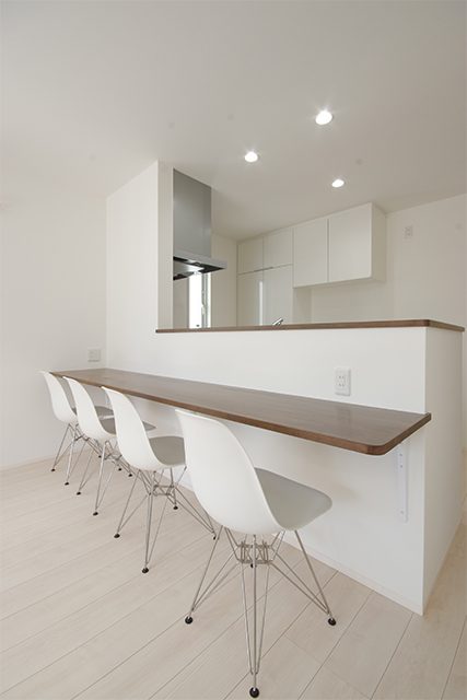 長野「家事動線にこだわったアクセントカラーが映えるモノトーンハウス」